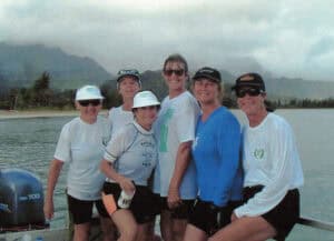 A longtime Hawaiʻi paddler, LaJuana spent ten years with the Kīhei Canoe Club on Maui—serving as club president and later becoming a lifetime member—and another ten years with the Keaukaha Canoe Club on Hawaiʻi Island. During that time, she trained, raced, and completed three Molokai Channel crossings in the grueling forty-two-mile Nā Wāhine O Ke Kai race.
